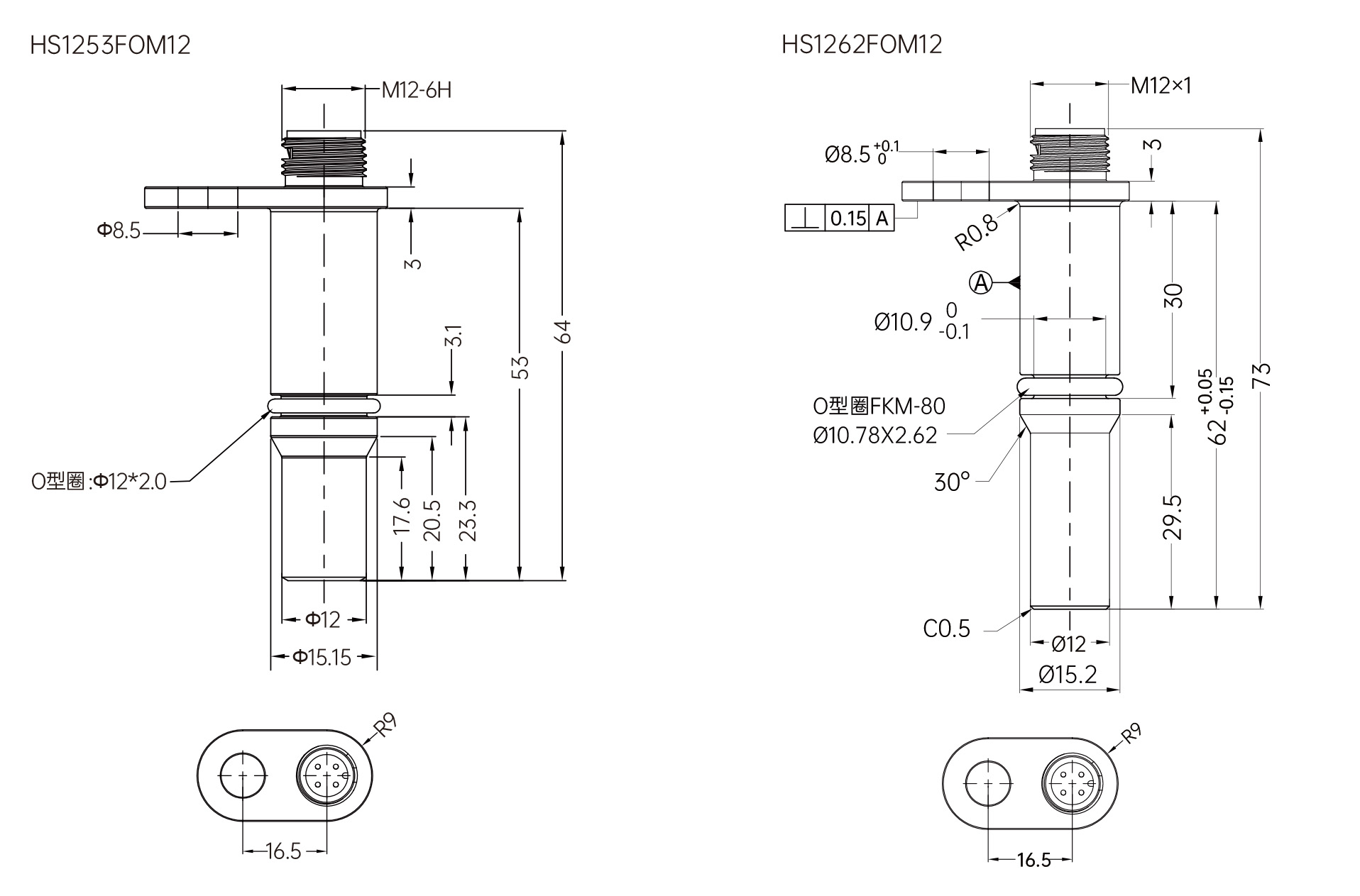 探头尺寸Φ12/L=53mm、Φ12/L=62mm