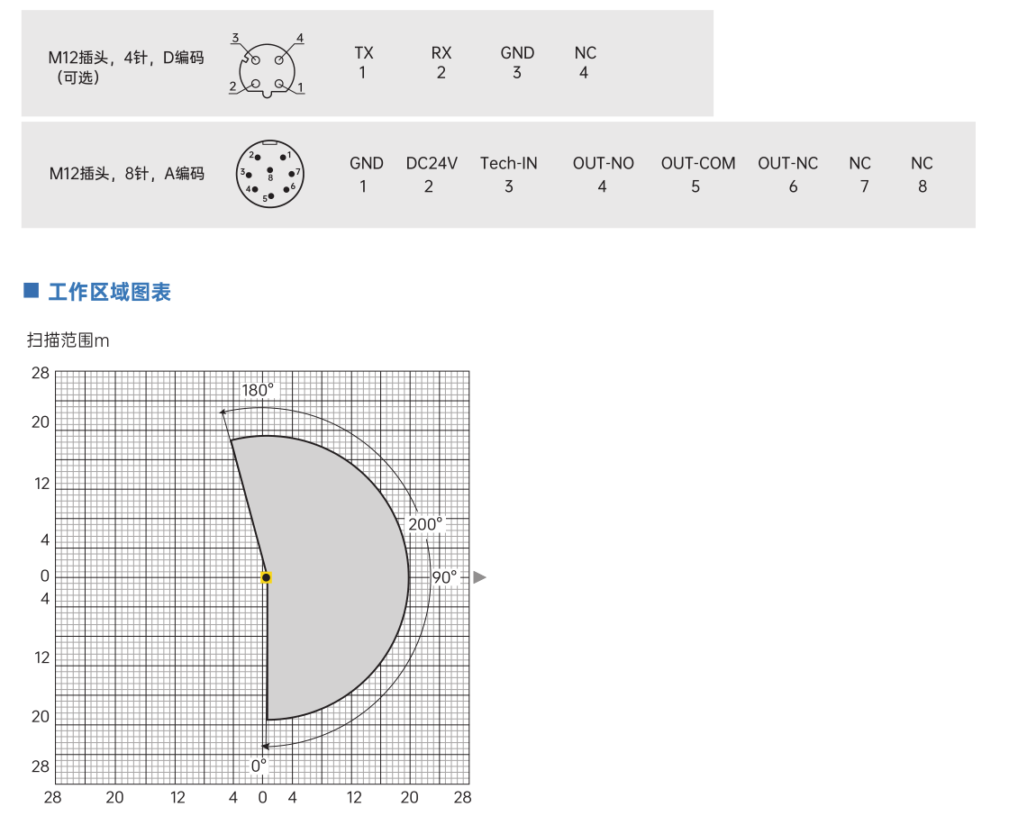 - 探测距离 0.1…20m@90%反射率