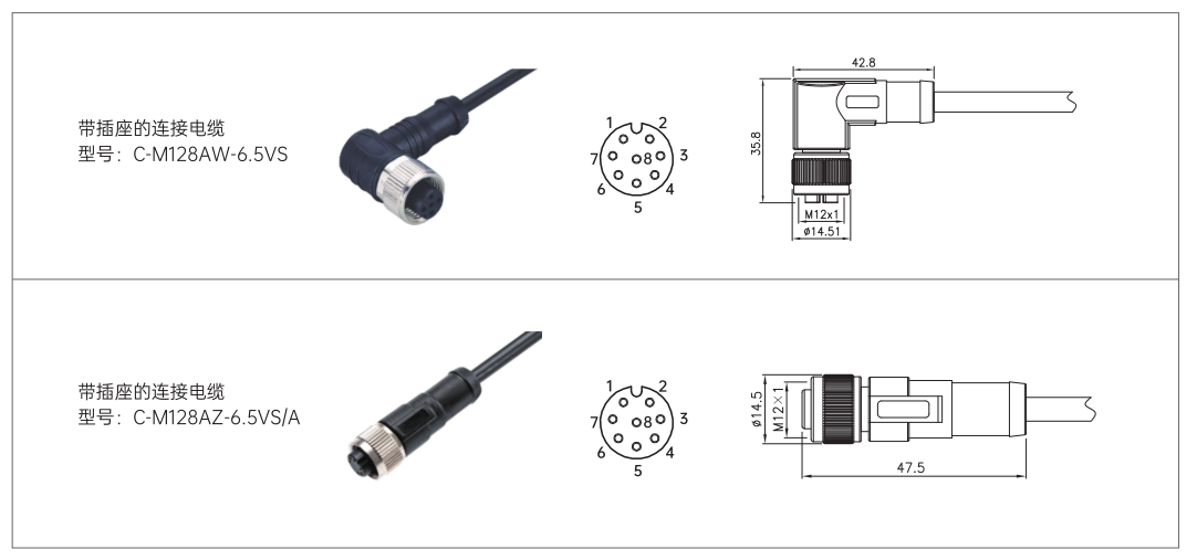 连接方式M12插头,8针,A编码